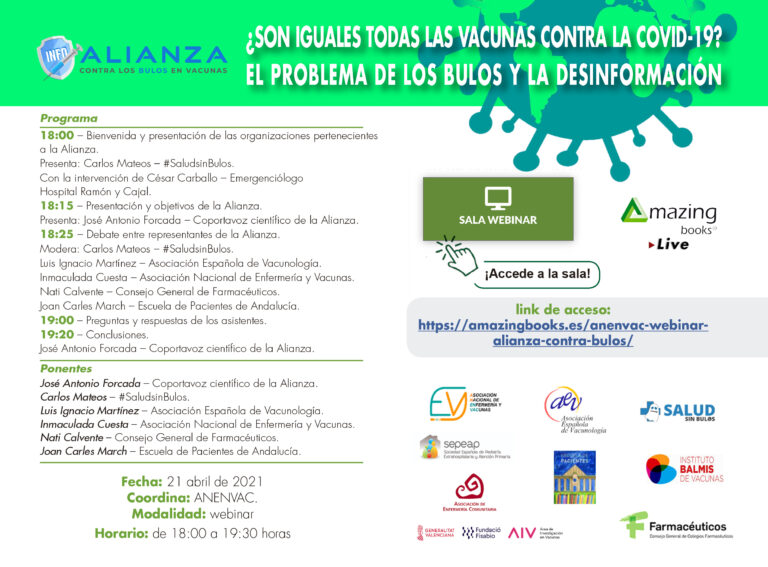 PROGRAMA: 18:00 – Bienvenida y presentación de las organizaciones pertenecientes a la Alianza.Presenta: Carlos Mateos – #SaludsinBulos. 18:15 – Presentación y objetivos de la Alianza.Presenta: José Antonio…