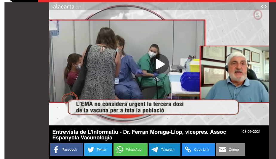 Entrevista de L’Informatiu – Dr. Ferran Moraga-Llop, vicepres. Assoc Espanyola Vacunologia