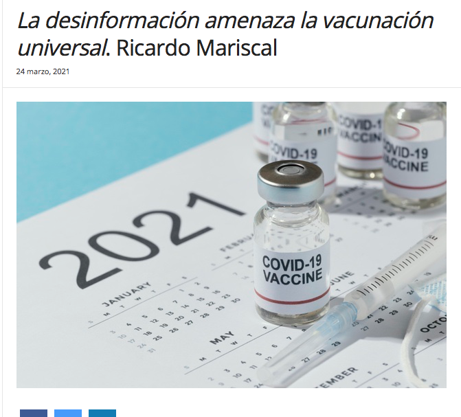 La desinformación amenaza la vacunación universal. Ricardo Mariscal