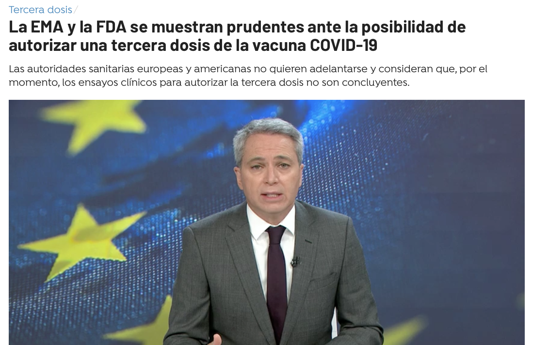 La EMA y la FDA se muestran prudentes ante la posibilidad de autorizar una tercera dosis de la vacuna COVID-19