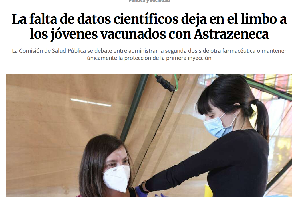 La falta de datos científicos deja en el limbo a los jóvenes vacunados con Astrazeneca