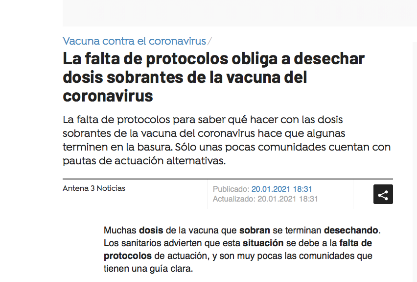 La falta de protocolos obliga a desechar dosis sobrantes de la vacuna del coronavirus