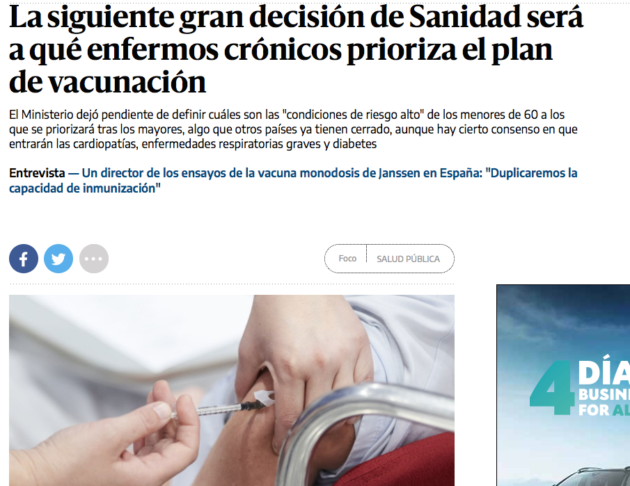 La siguiente gran decisión de Sanidad será a qué enfermos crónicos prioriza el plan de vacunación