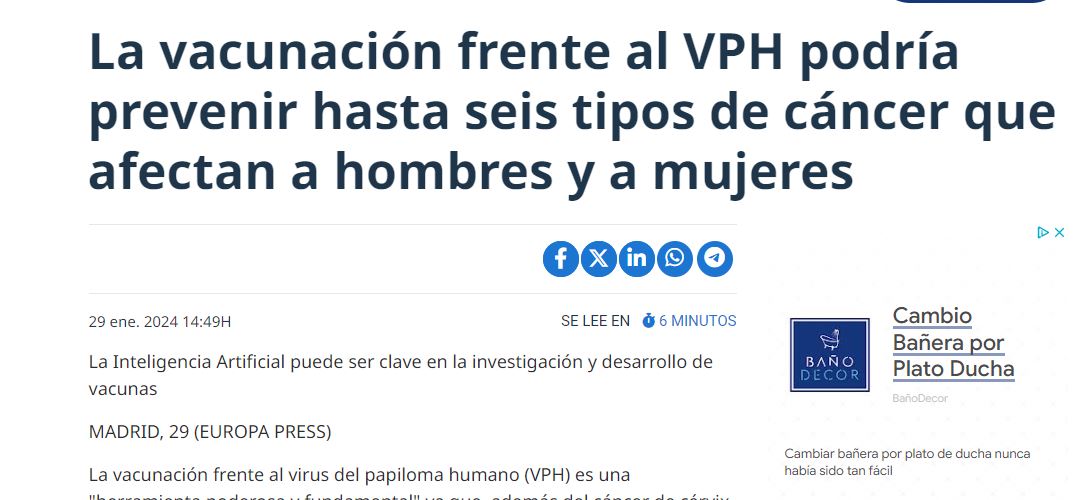 La vacunación frente al VPH podría prevenir hasta seis tipos de cáncer que afectan a hombres y a mujeres