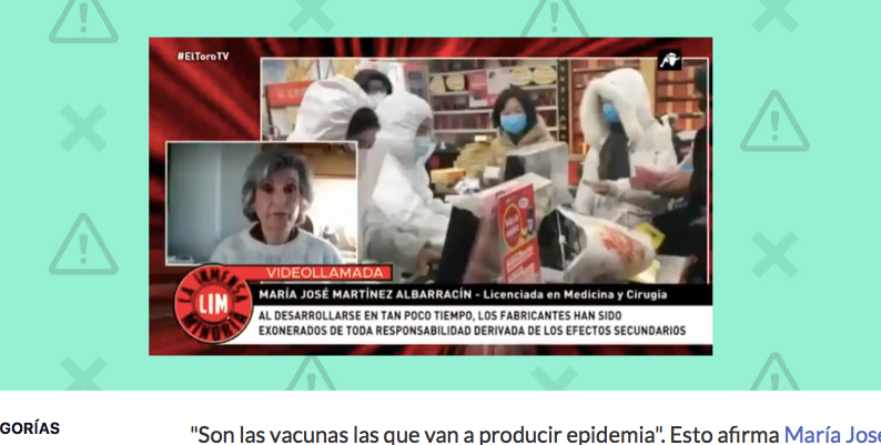 Las afirmaciones falsas o sin evidencias de este vídeo de María José Martínez Albarracín, del grupo negacionista ‘Médicos por la verdad España’, en el que dice que son las vacunas contra la COVID-19 las que “van a producir epidemia”