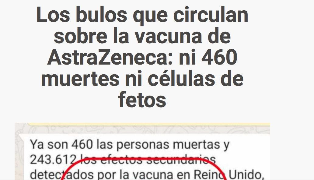 Los bulos que circulan sobre la vacuna de AstraZeneca: ni 460 muertes ni células de fetos
