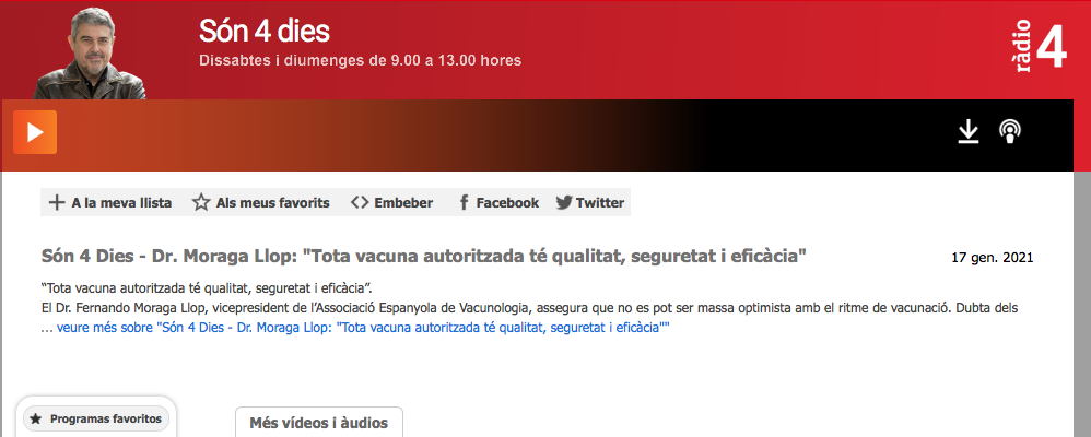 Són 4 Dies – Dr. Moraga Llop: “Tota vacuna autoritzada té qualitat, seguretat i eficàcia”