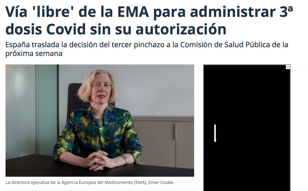 Vía ‘libre’ de la EMA para administrar 3ª dosis Covid sin su autorización